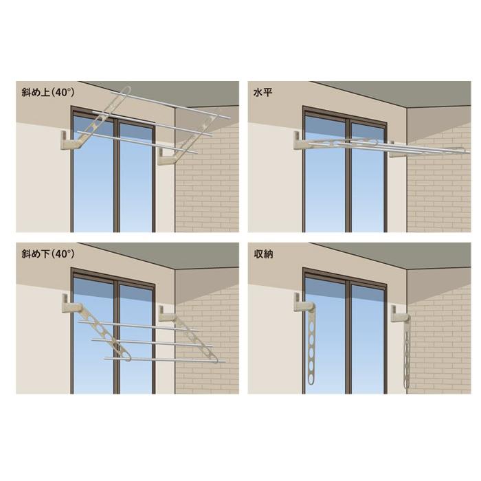 物干し 掃き出し窓や スペースの狭いベランダ の窓壁側に取付けるタイプ。アームの角度を多段階で調整することができます。竿を掛けたまま角度の変更ができるので、室内にいながらラクラク最適な高さで物干しが行えます。■カラー:ライトブロンズ/ダークブロンズ/ホワイト/ブラック■3段活用(斜め上使用−水平使用−斜め下使用)+アーム下折れ■サイズ(出寸法):水平時 844ミリ/収納時 215ミリ■材質:本体: アルミダイカスト(塗装仕上げ)スペーサー:ポリアセタール金具・ネジ類:ステンレス六角コーチスクリュー(本体と同色)直径8x90 2本 (平座金あり)■内容: 1本■納期:1週間程度※この商品は1本販売です。※一般的には2本1組での使用になります。その場合の目安重量30kg※物干し竿は含まれていません。(msm-cd :250-029) LBライトブロンズ(msm-cd :250-030) DBダークブロンズ(msm-cd :250-028) Wホワイト(msm-cd :250-017) BLブラック