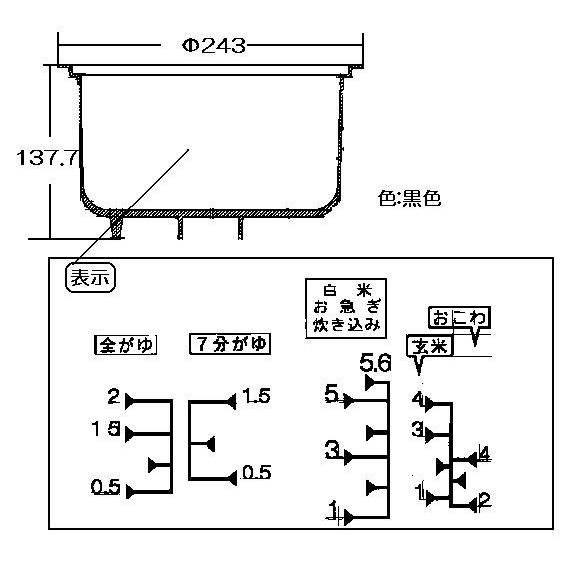 ●お米を入れるお釜です。●サイズ: 直径243×高さ137.7(mm)●内側色: 黒●重量: 約1kg●お米を入れるお釜です。