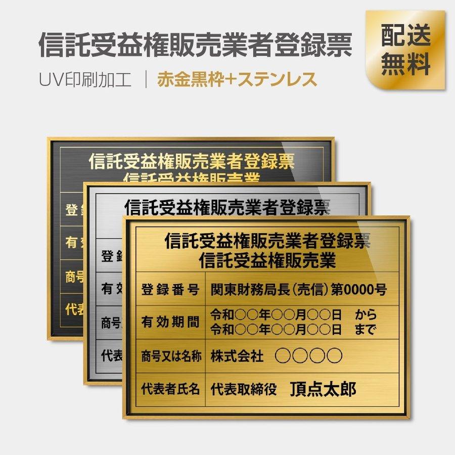信託受益権販売業者登録票 選べる額の色 ステンレスカラー 書体種類 520×370mm uv印刷 撥水加工 錆びない 法定サイズ 短納期(l0736-stk)