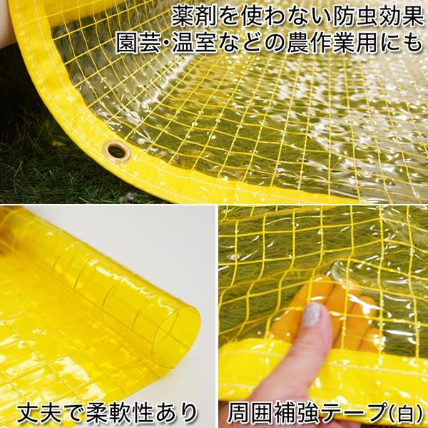 黄色 防虫 防炎糸入りビニールカーテン FT03【RoHS2指令対応商品】■カーテンサイズ:オーダーサイズ■厚み:0.3mm/糸部0.38mm■重量:約395g/m2■機能:防炎・防虫■ハトメサイズ:外径24mm 内径12mm(カーテンのサイズにより変わる場合があります)■カラー:緑透明(四方折り返し補強テープ:ホワイト)■摘要:日本製■ハトメ:上部約25cm間隔/サイド・下部は真ん中に1ヶ所真鍮/ゴールド(サイズによりカラーが異なる場合があります)※サイズによりハトメの間隔は異なります。指定可能■仕様:・四方折り返し縫製(補強白テープ入れ)・ハトメ数、ピッチはオーダー可能(別料金になる場合あり)・サイド・下部ハトメ入れ可能(500ピッチ前後) ・ご希望の特殊仕様での仕上げ可能(別料金)■注意事項・オーダー商品のため、キャンセル・返品・交換は対応できません・色、質感等は、無料サンプルで事前にお確かめください