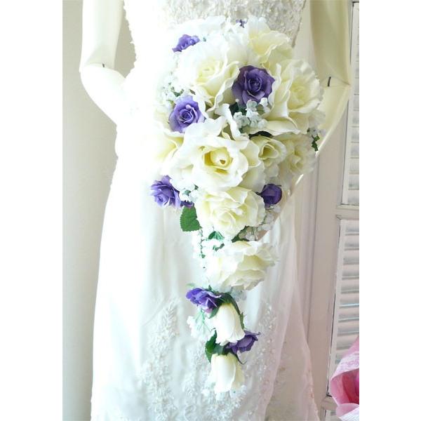 ブライダルブーケ長さ:約43cm 横幅:約23cm ブートニア付"}