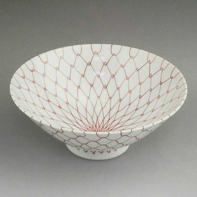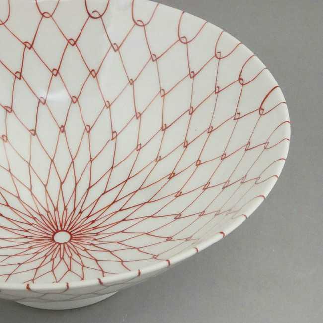 京焼 清水焼 赤網ご飯茶碗 特大(鯛茶) 芳山 直径約15cm