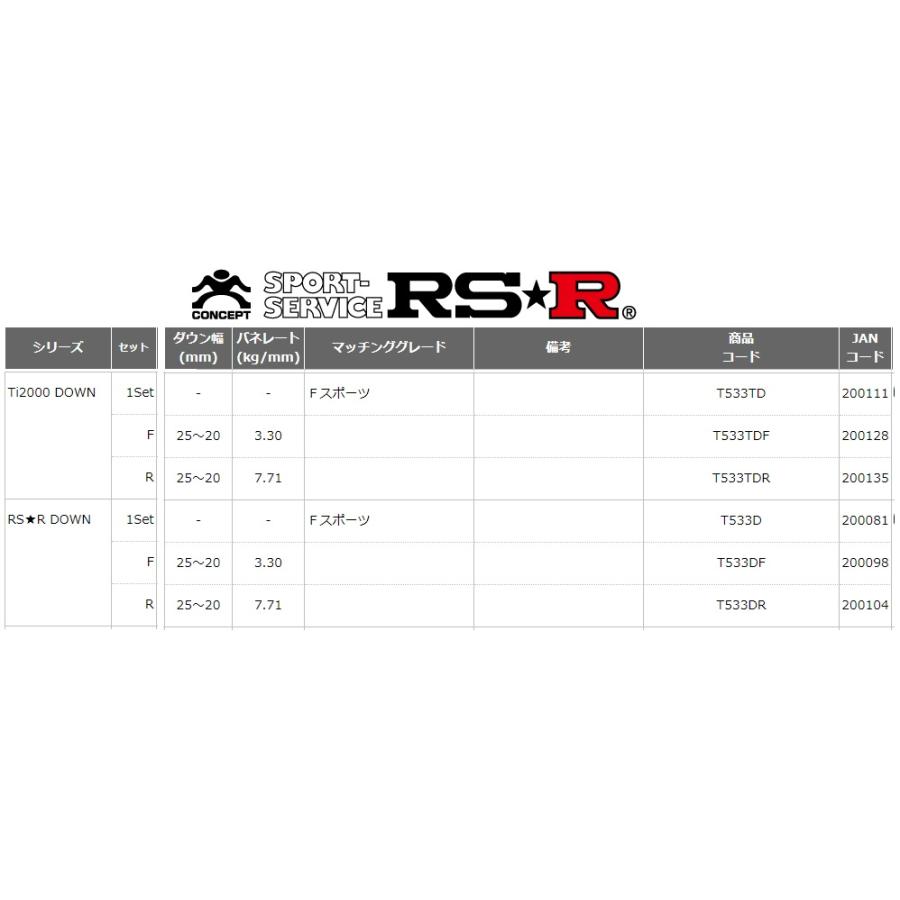 RSR NX300h AYZ15 ダウンサス スプリング フロント T533DF RS-R RS☆R DOWN RSR ダウン