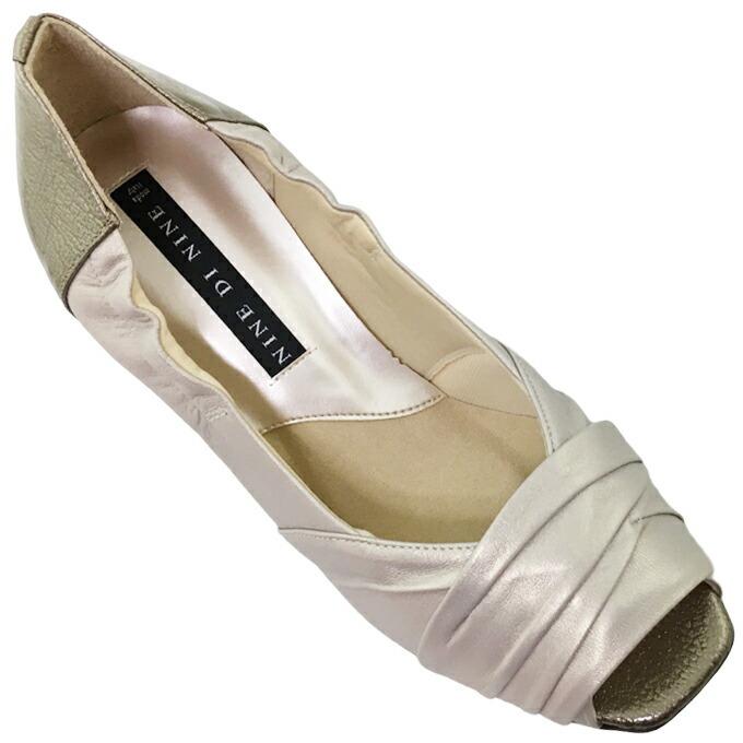 “NINE DI NINE”甲の折り返しデザインがおしゃれなオープントゥパンプスです。