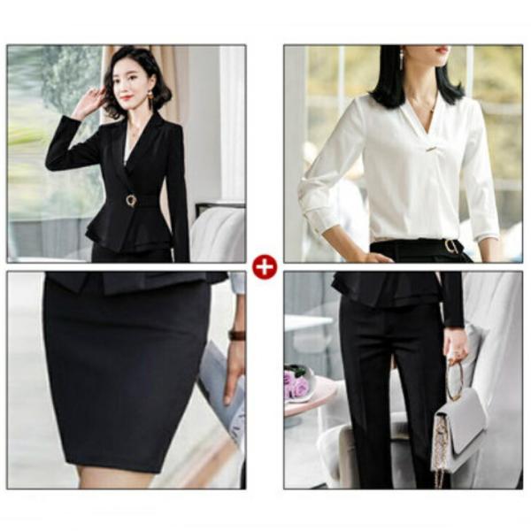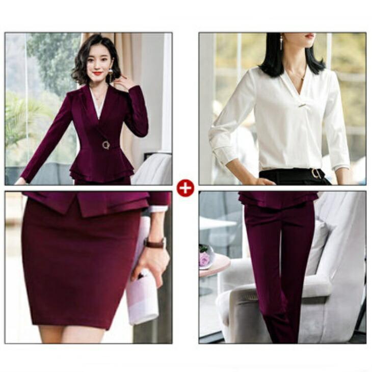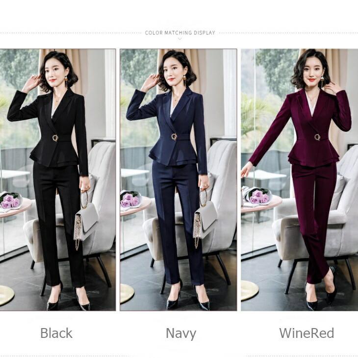 スーツ ジャケット パンツ スカート ブラウス 4点セット 春 大きいサイズ ブラック ワインレッド ネイビー 長袖カジュアル きれいめ 説明会 通勤 事務服 office