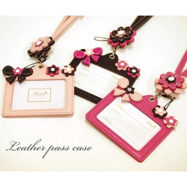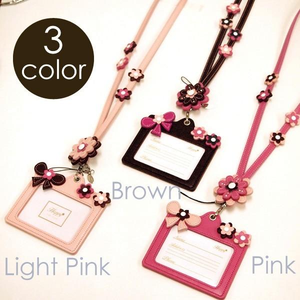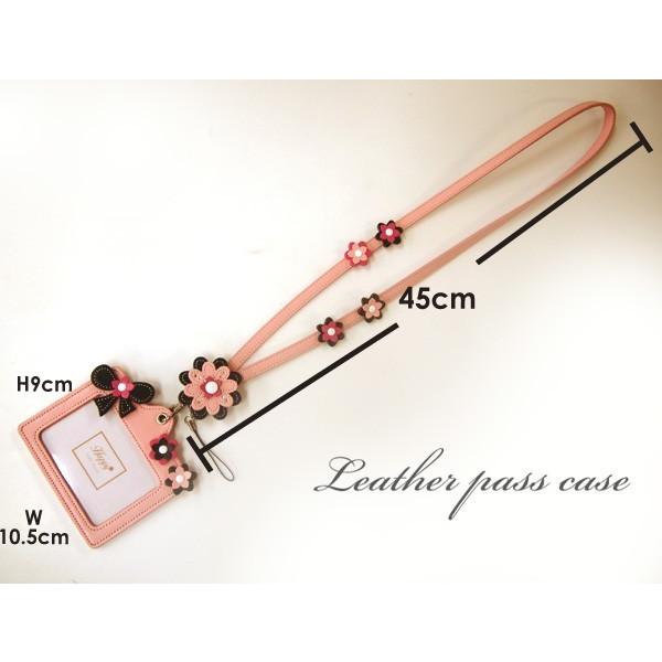 IDカードケース ネックストラップ レディース かわいい おしゃれ 名入れ無料 ネーム 花 フラワー 革 日本製