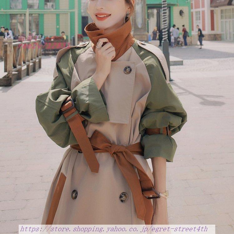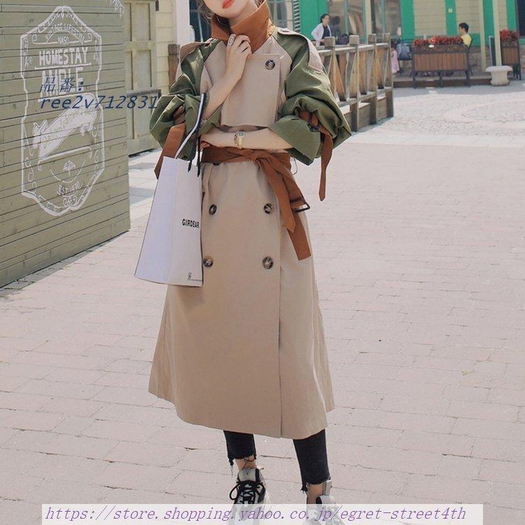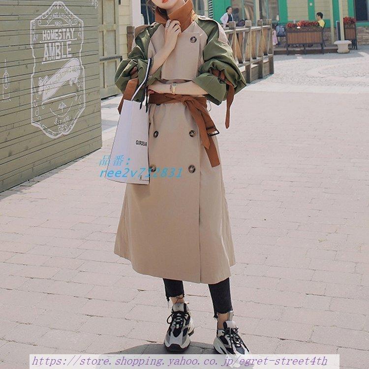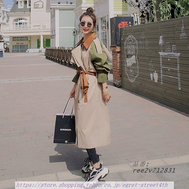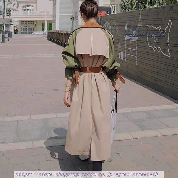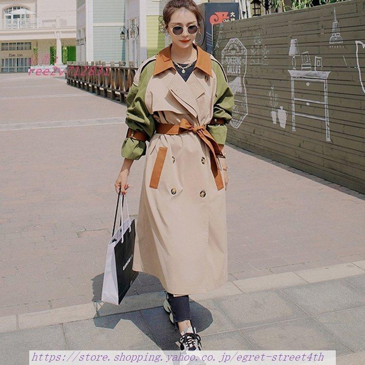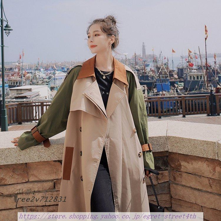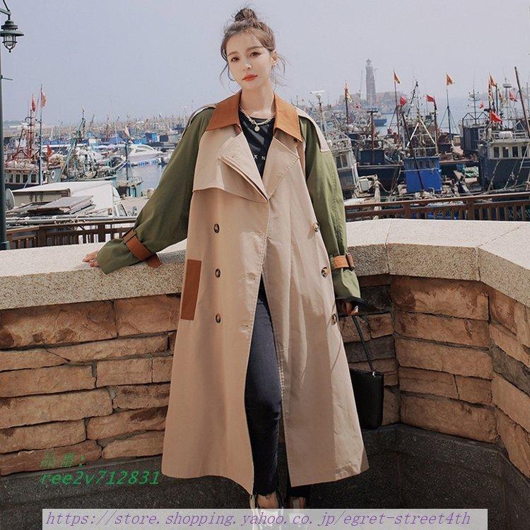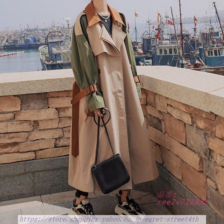 ロングトレンチコート レディース 春 カーキ ベージュ 大きいサイズ 2021春服 カジュアル おしゃれ ゆったり 通勤卒業式 超ロングコート 3色切り替え 配色 防寒
