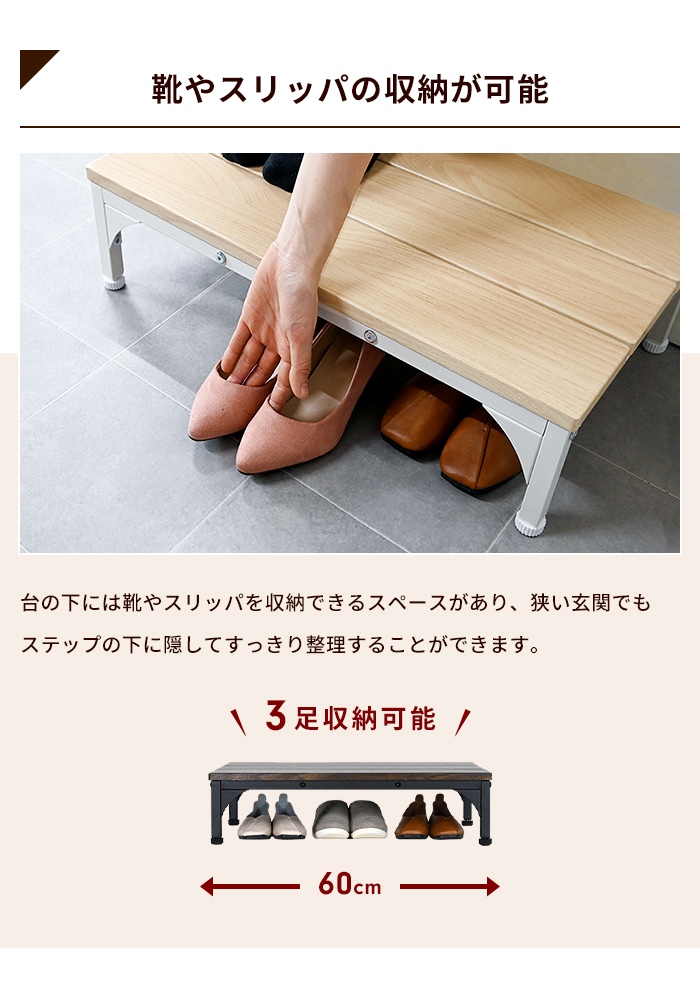 玄関台 幅60 台 踏み台 ステップ 下駄箱 シューズラック 玄関収納 木目模様 スチール シンプル おしゃれ ナチュラル M5-MGKFD00075NAO