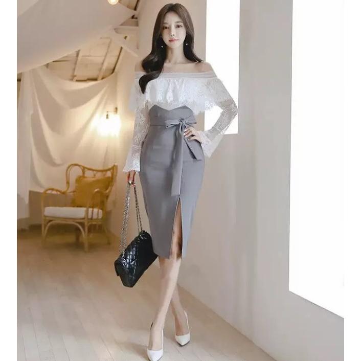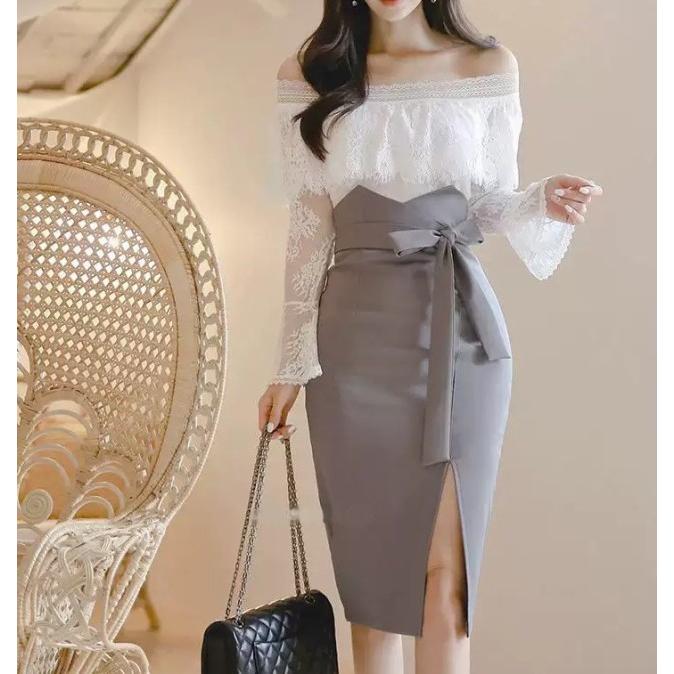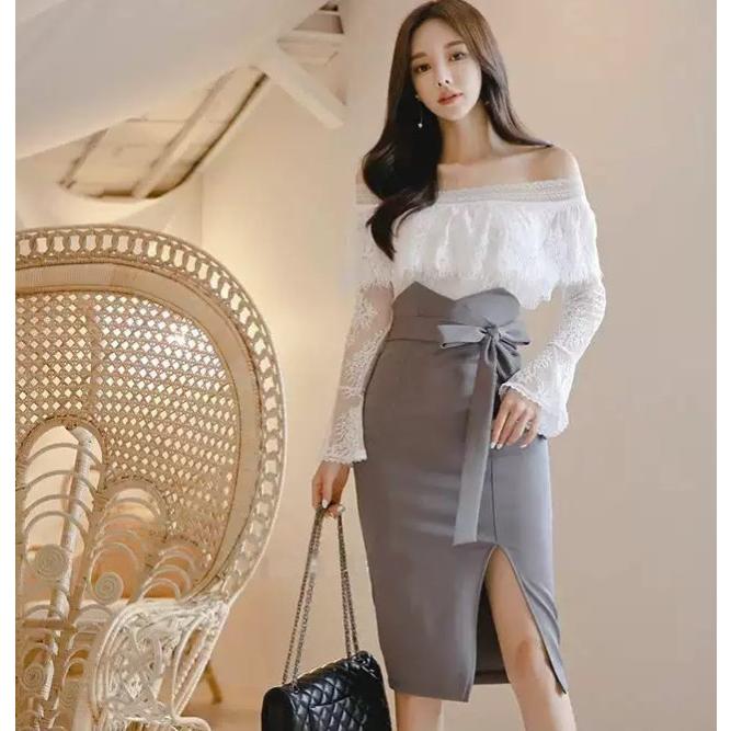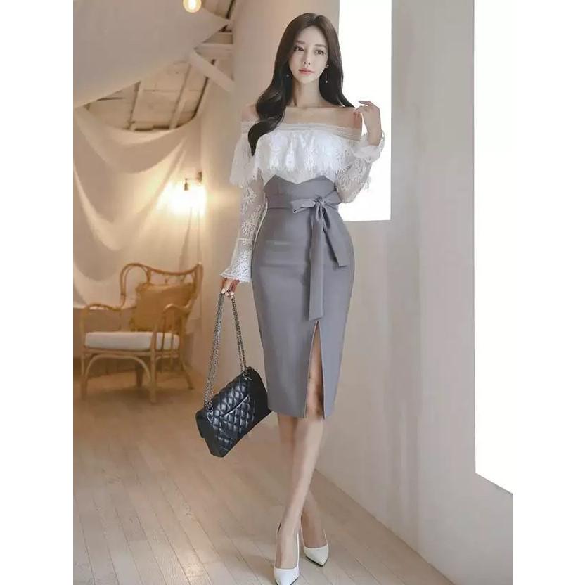 上品で色っぽいコルセット風デザインのタイトスカート。