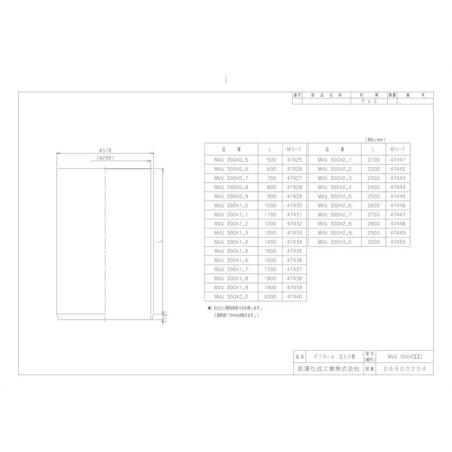 【MVU300X1.0】 《KJK》 マエザワ ビニホール 用立上り管 300 ωε0