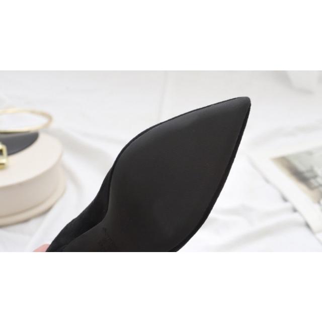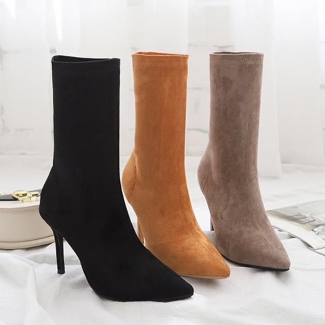 スエード ミドル丈 ブーツ ピンヒール ソックスブーツ ポインテッドトゥ レディース 靴 シンプル 秋 冬 黒 ブラック