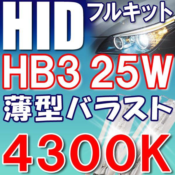 HIDフルキット / HB3 / 25W 薄型バラスト / 4300K / リレー付き / 保証付き / 互換品
