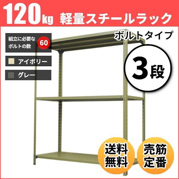 【軽量スチールラック ボルトタイプの特長】・軽量スチールラックは汎用性の高い万能型で、オプションの種類は豊富に準備されています。・ボルトでがっちり組み上げるので、長期間棚板の高さを変更しない場合に最適です。商品名:業務用スチールラック 120kg/段 ボルトタイプ表示寸法:高さ2100×間口875×奥行450mm実寸法:高さ2101×間口885×奥行460mm段数:3段重量:21kg最大耐荷重:120kg(棚板1枚当たり)最大均等積載荷重:MAX500kg(1台当たり)主材料:スチール(鉄)カラー:アイボリー/グレー塗料:高級メラミン焼付け塗装生産国:日本(国産品)梱包と出荷形状:部材・部品のダンボール簡易包装(お客様組立品)専門店だからできる国産・高品質の業務用スチール棚を低価格で翌日出荷!●低価格で国産・高品質の業務用スチール棚●揺れに強い3本爪の唯一のスチールラック●在庫があれば翌日出荷!送料無料!●大型物件にも対応可能!まとめ買い割引きも!"}