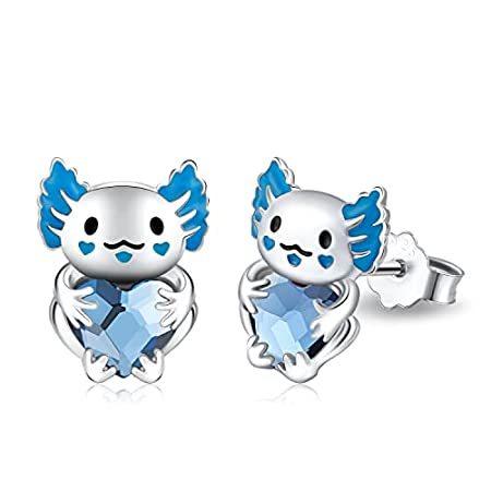 送料無料Axolotl ピアス スターリングシルバー 海の生き物 スタッドピアス 低刺激性 かわいいイヤリング ブルークリスタル付き カワイイ ジュエリーギフ