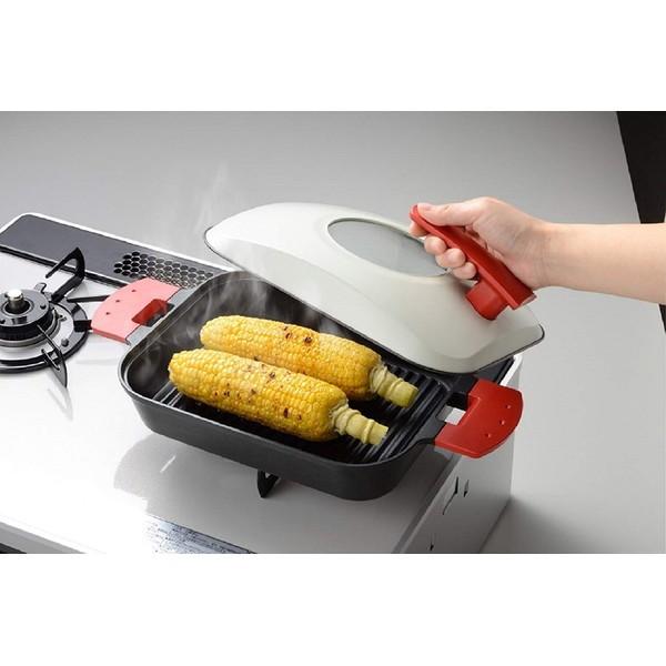 魚焼きグリルの面倒な片付けやにおいの欠点をカバー。 スチームグリルは蒸気で食材を包み込み中身はふっくら、外はパリパリに仕上げ余計な脂は落とします。フライパン感覚で気軽に美味しくヘルシー調理。【商品の仕様】サイズ:約40×21.5×12.5cm本体重量:約1.6kg素材・材質:アルミニウム合金、鋼板、全面物理強化ガラス生産国:日本