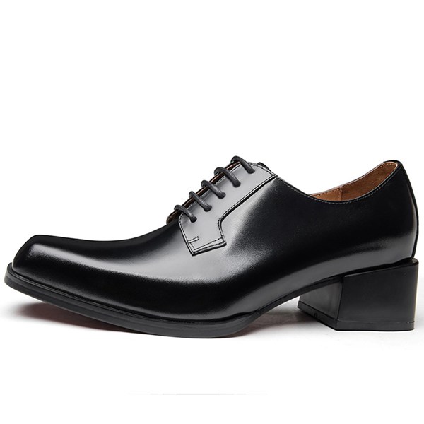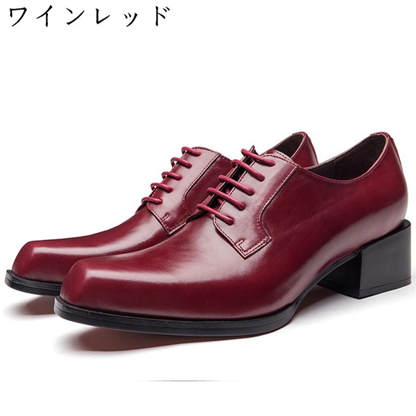 レザー ビジネスシューズ ミドルヒール5cm レースアップシューズ メンズ 本革 スクエアトゥ 春夏 外羽根 ロングノーズ 蒸れない 正式