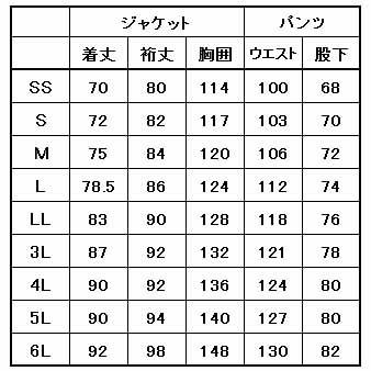 | サイズ表 |