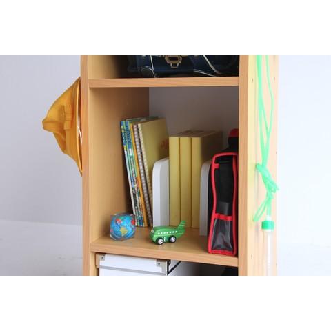 ランドセル、教科書、裁縫セット、帽子等学校生活に必要なものをまとめて収納可能。毎日使うものを一か所に収納することでお片付けの習慣も身につき、物を大切にする意識も強くなります。忘れ物も少なくなり自立心の芽生えにつながります。〇生産地 インドネシア〇サイズ 商品サイズ W350 D350 H775 (mm) 商品重量 11kg 梱包サイズ W820 D370 H95 (mm) 梱包重量 12kg〇素材 プリント紙化粧繊維板・フック天然木〇商品詳細 組立仕様 : 組立品 耐荷重: 各棚 5kg・フック 1kg"}
