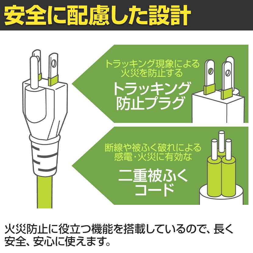 | 備考 | ・一括手元スイッチ付き(2ピン差込口付き、通電表示) ・雷ガード搭載 ・ユリア樹脂二重構造 ・二重被ふくコード採用 断線や被ふく破れによる感電・火災の防止に有効です。 ・抜け止め機構 差し込み口を回転させることによりプラグをロックすることができます。 ・絶縁キャッププラグ トラッキング現象による火災の防止に有効です。 ・ノイズフィルター内蔵 ・強力マグネット付き ・仮固定穴付き ・RoHS指令準拠(10物質) |