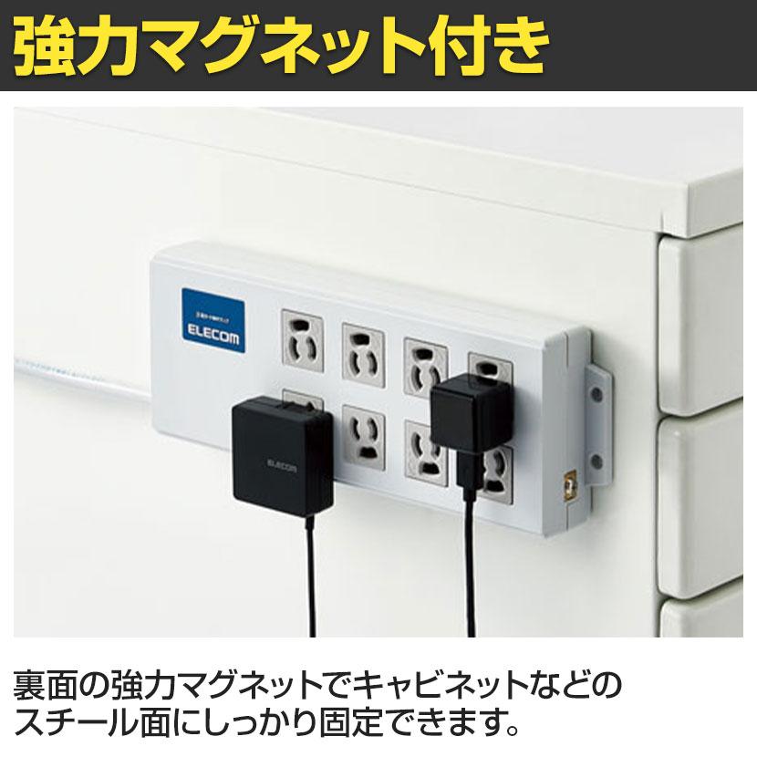 延長コード 電源コンセント ボックス型 3P8口 2P1口 2000mm 抜け止め 一括スイッチ 雷ガード ノイズフィルター RoHS指令準拠 ライトグレー