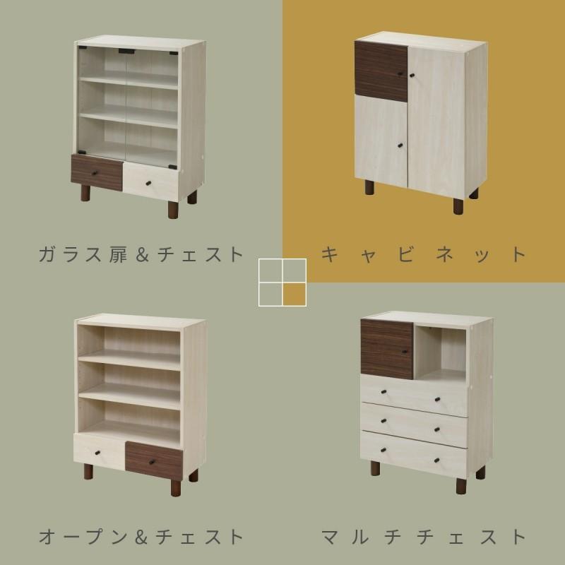 ■商品説明 木目のあるナチュラル×ダークブラウンのツートーンで、ちょっぴりレトロな大人可愛いキャビネット。3箇所の収納部はすべて扉付きなのでたくさん収納しても扉を閉めれば見た目スッキリ!ナチュラルカラーの扉内は可動棚になっており、収納物に合わせて高さを調節できます。同じシリーズ商品と積み重ねたり横に並べたり、自分流のスタイリングが可能。自由に組み合わせることで、お部屋に合わせたレイアウトとオリジナル収納を実現できます。■本体サイズ [外寸]幅60×奥行32.5×高さ85cm■組立時間(目安)(大人2人) お客様組立(30分)■備考・可動棚:3枚■材質[本体]プリント紙化粧合板■収納量・耐荷重[天板]約10kg以下[固定棚]各約5kg以下[可動棚]各約5kg以下