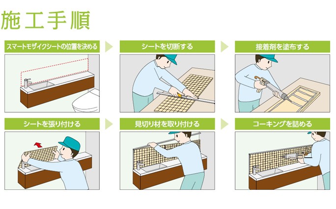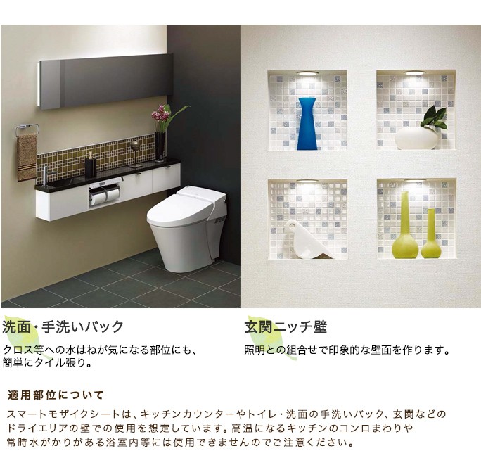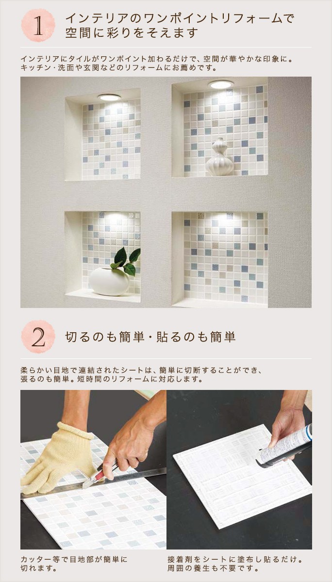 【沖縄・離島送料別途】【インテリアのワンポイントリフォーム/切るのも簡単・張るのも簡単】スマートモザイクシート切断・張付けが容易で目地詰めも必要ない、新感覚のモザイクシート。簡単な施工でモザイクタイルのアクセント張りが気軽に楽しめます。タイル:BI[磁器質]|施釉 目地:シリコーン樹脂(600×300mm(1シート))