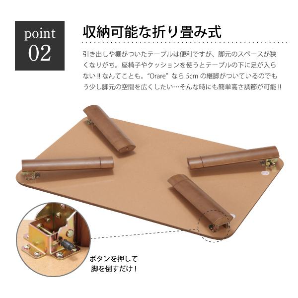2段階高さ調節可能 軽量継脚折り畳み座卓 Orare 幅90cm 座卓 作業台 ローテーブル センターテーブル リビングテーブル 折れ脚 長方形 コンパクト 継脚 軽量 軽い