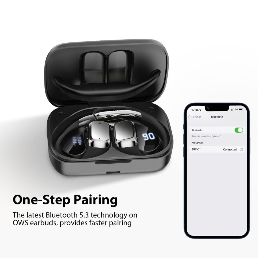 DARONGFENG Open Ear Wireless Bluetooth Headphones, Pain-Free Air Conduction Ear Buds with LED Digital Display Charging Case, Sweat Resistant for Runni
