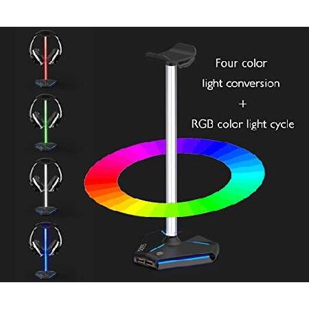 COZOO RGB ヘッドホンスタンド USB2.0延長充電ポート延長コード2個付き ヘッドセットスタンドホルダー ゲーマーデスクトップテーブルゲームイヤホン(並行輸入品)