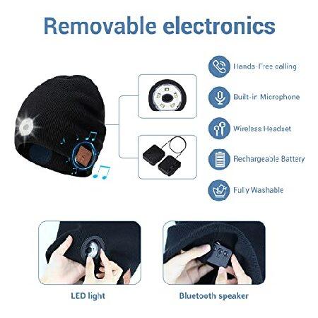 TOUCH TWO Bluetooth Beanie Hat with LED Light Wireless Musical Knitted Cap with Headphone Stereo Speakers & Mic for Running Hiking Jogging Black