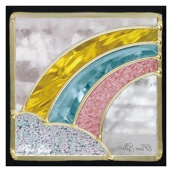 ステンドグラス (SH-D16) 200×200×18mm レインボー 虹 ピュアグラス Dサイズ (約1kg) ※