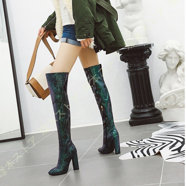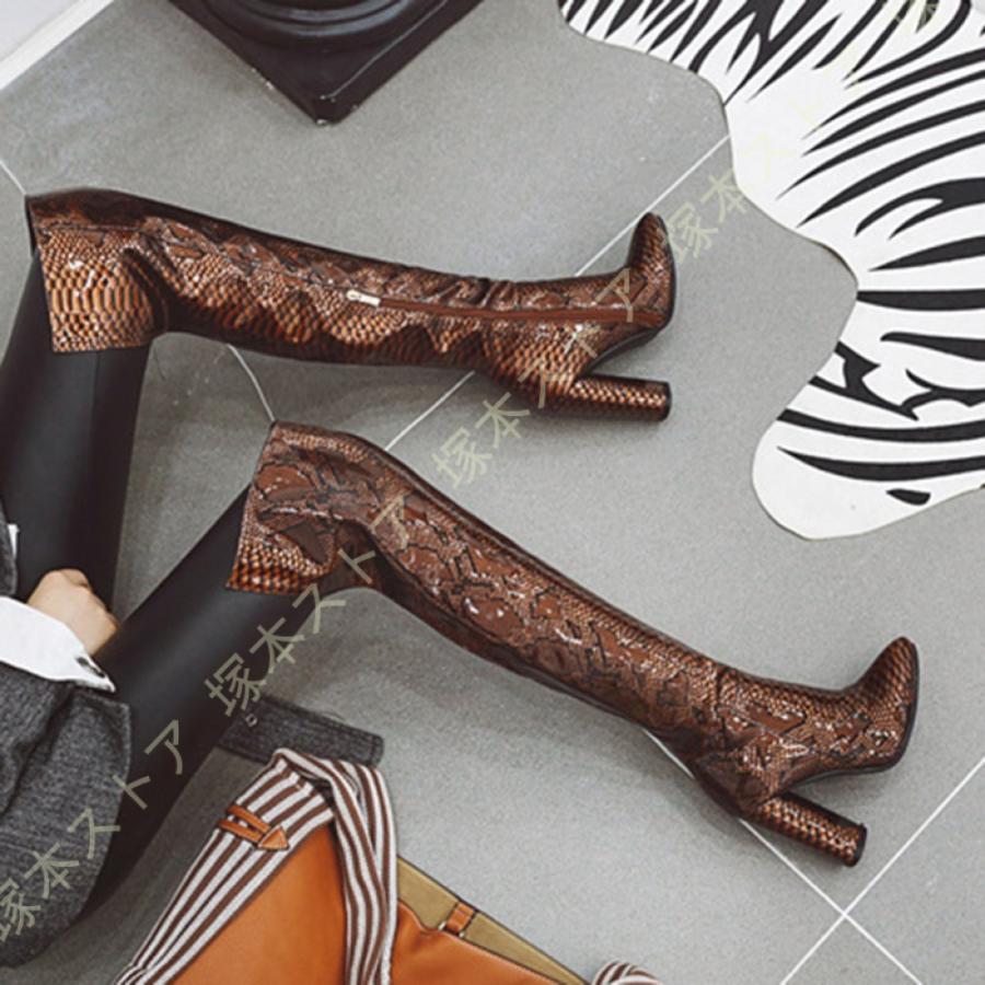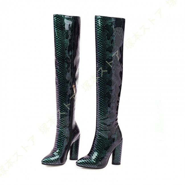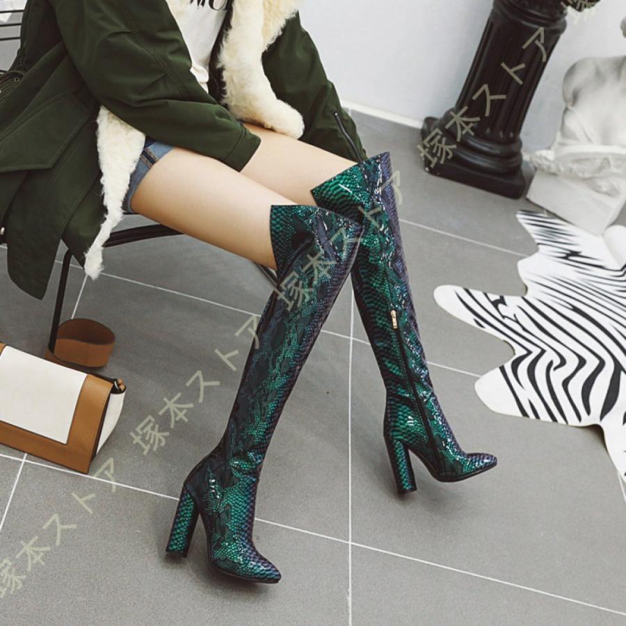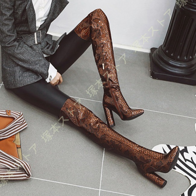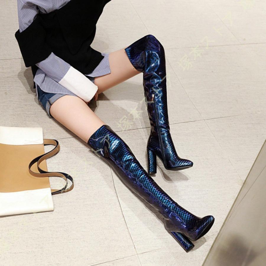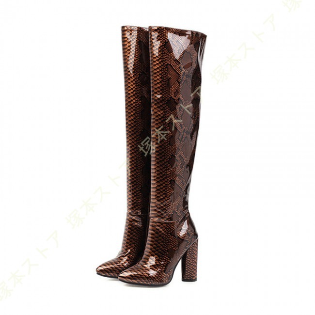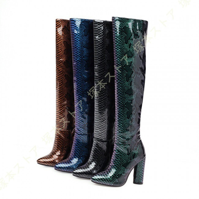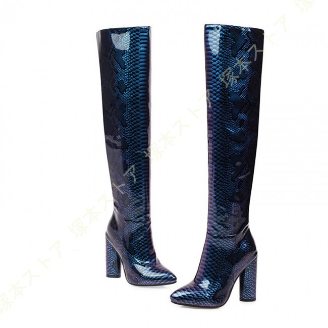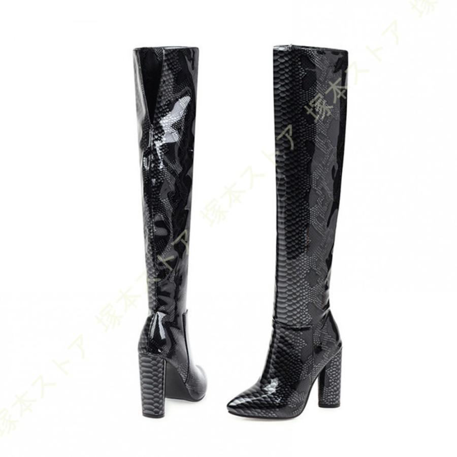 ニーハイブーツ 秋冬 セクシー 太ヒール 美脚 疲れにくい おしゃれ 可愛い パイソン エナメル調 無地 レディース シューズ ストレッチ くつ 靴 ロングブーツ