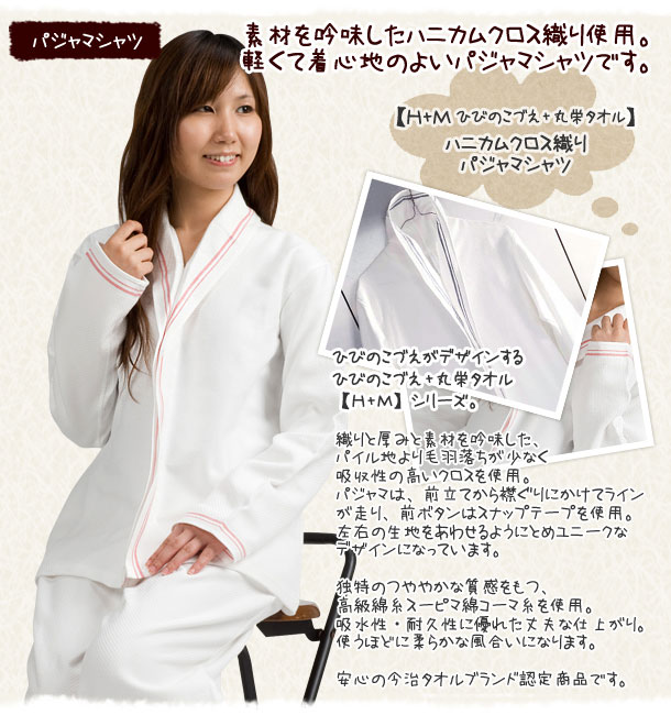 今治タオル H+M ハニカムクロス織り パジャマシャツ Lサイズ レディース ギフト 国産 日本製