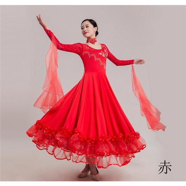 6カラー 社交ダンス 衣装 モダンドレス ラテンドレス ラテン 社交ダンスドレス 大きい裾 ダンス S~3XL 競技着 練習服