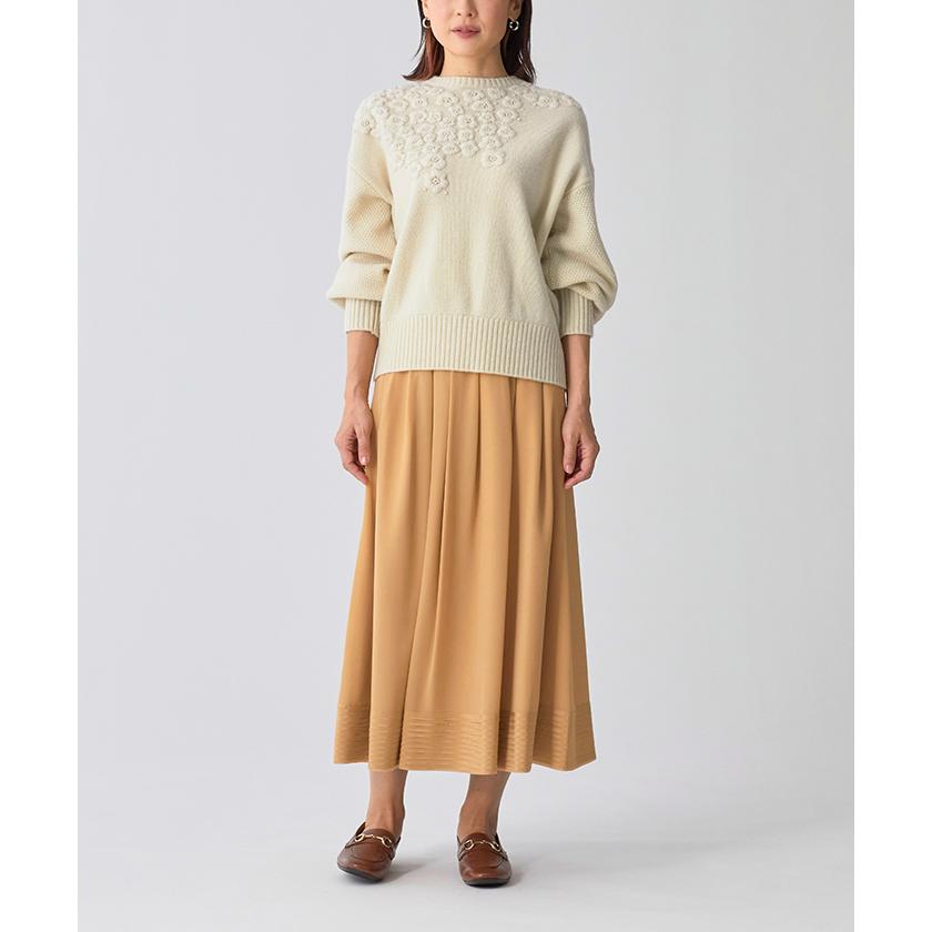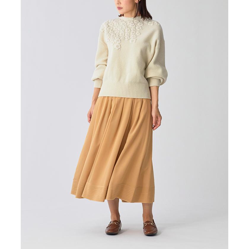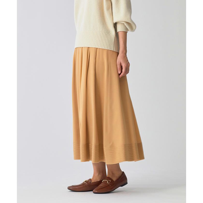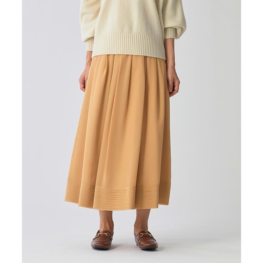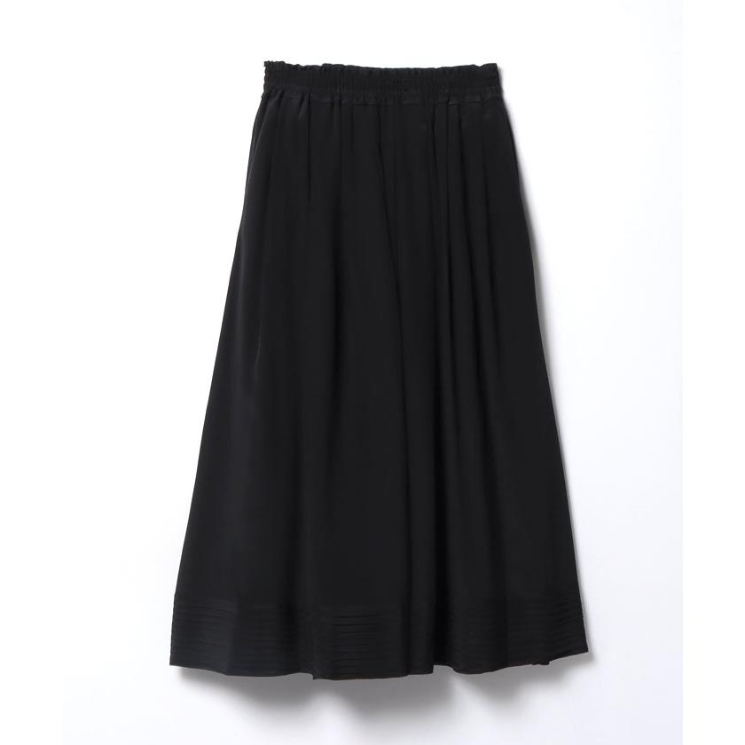 ウエストゴム仕様の着心地の良いギャザースカート。裾まわりのボリュームのあるタックディテールがポイント。白いシャツなどを合わせてブラックフォーマルのスタイリングもおすすめです。