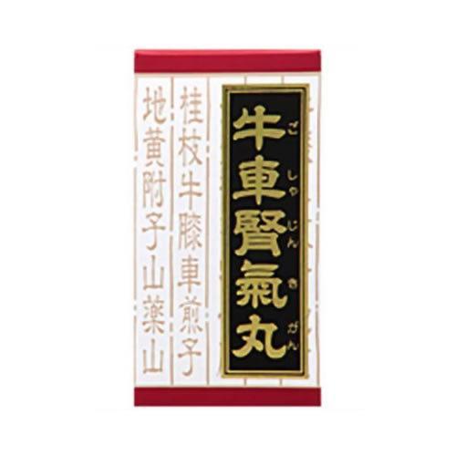 | 成分 | 12錠中 :牛車腎気丸料エキス粉末 2400mg (ジオウ2.5g,サンシュユ・サンヤク・タクシャ・ブクリョウ・ボタンピ・ゴシツ・シャゼンシ各1.5g,ケイヒ0.5g,ブシ末0.25gより抽出) |