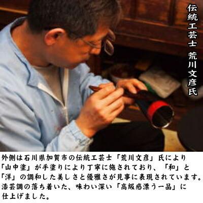 ・材質/18-8ステンレススチール(表面塗装:本漆塗装)、黒・赤手塗り仕上げ、内面:金仕上げ、食品衛生法適用特殊プライマー(下塗・密着材)使用