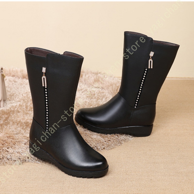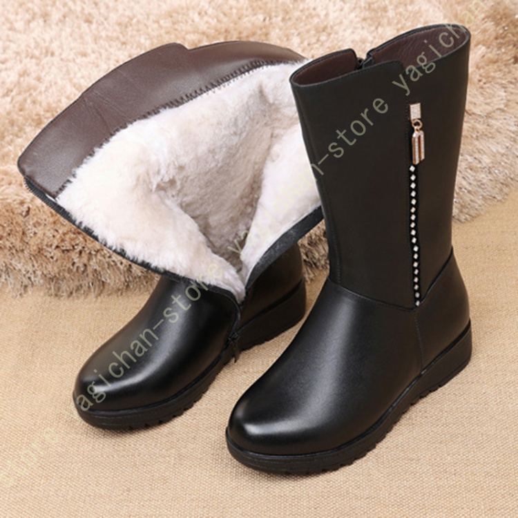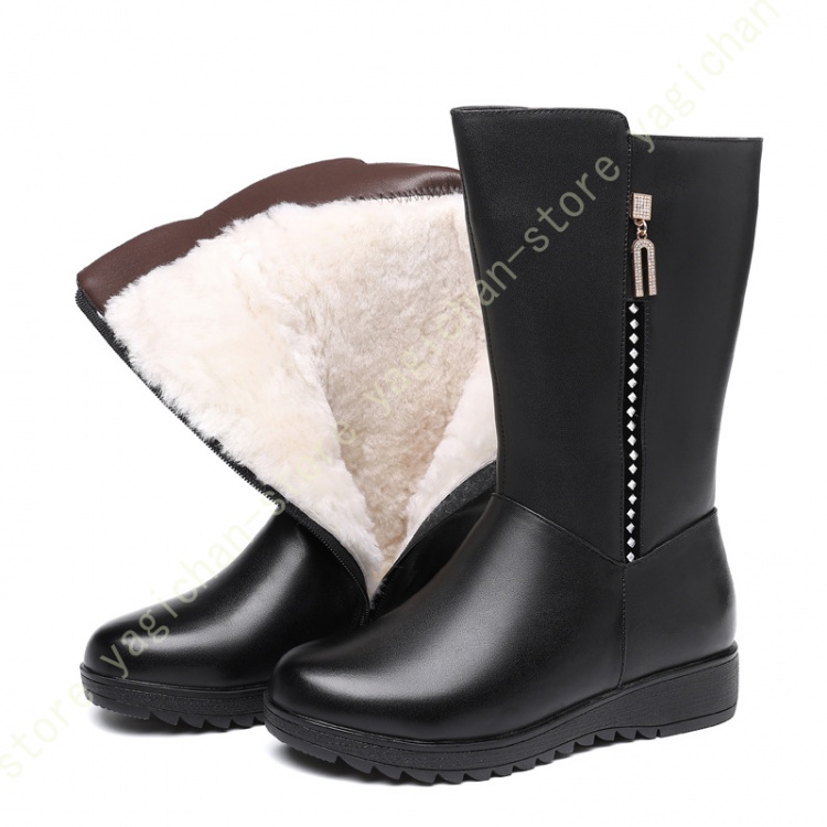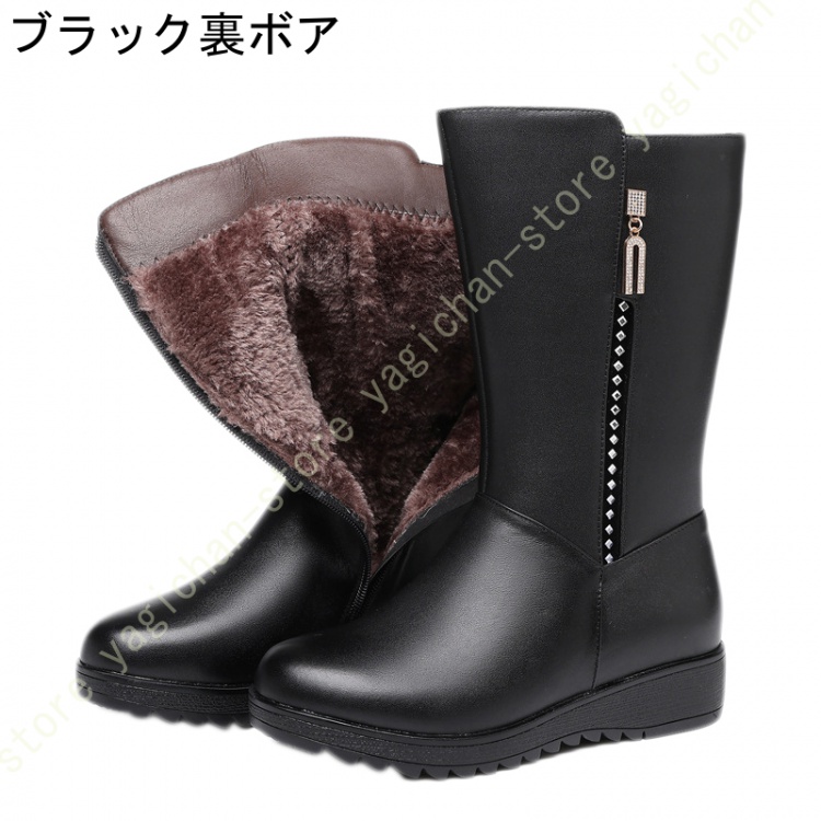 メイン素材:レザーヒール:約3.5cm 筒丈:約25cmサイズ:22cm 22.5cm 23cm 23.5cm 24cm 24.5cm 25.0cm 25.5cm 26.0cm●柔らかい牛革を使用しているので、優しく甲周りにフィットして、痛くなりにくい!3.5cmヒールのミドルブーツが登場しました。●内側には柔らかいボア素材を採用しているため、保温性が抜群です。厳冬になってもお客様の両足を寒気から守ります。●靴底の模様は特殊なデザインを使用しているため、滑り止めの効果を補強します。●このスノーシューズ はスムーズなサイドジッパーで設計されており、着脱が簡単で、耐久性があります。● 寒い季節のショッピングや旅行など、さまざまなシーンで活躍してくれます。通勤通学、日常、お出かけ、雪道、雪の日、雪遊び、デート、スキーなどの場面にも最適です。注意点サイズ表記は目安です、若干の誤差がある場合がございます商品写真はできる限り実物の色に近づけるよう加工しておりますが、お客様のお使いのモニター設定、お部屋の照明等により実際の商品と色味が異なる場合がございます。"}