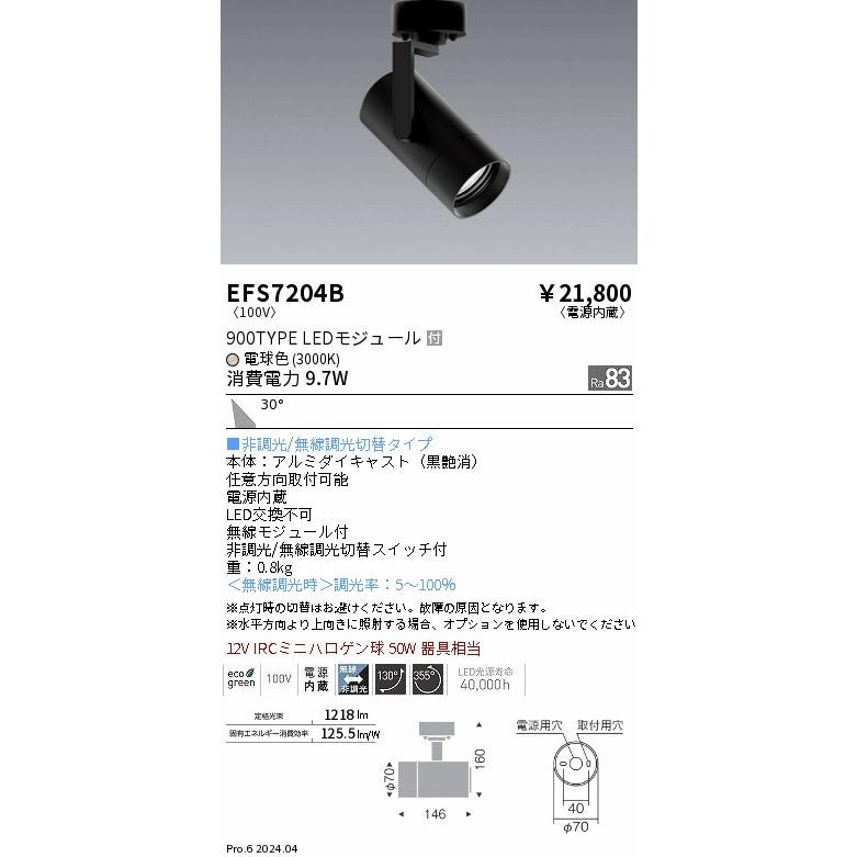 施設用照明器具 遠藤照明 スポットライト EFS7204B 検索用カテゴリ360 【LED照明】 【電球色】 【非調光】 【調光可】 【広角タイプ】 【フレンジタイプ】スリム&シンプルデザインを極めた高性能スポットライト