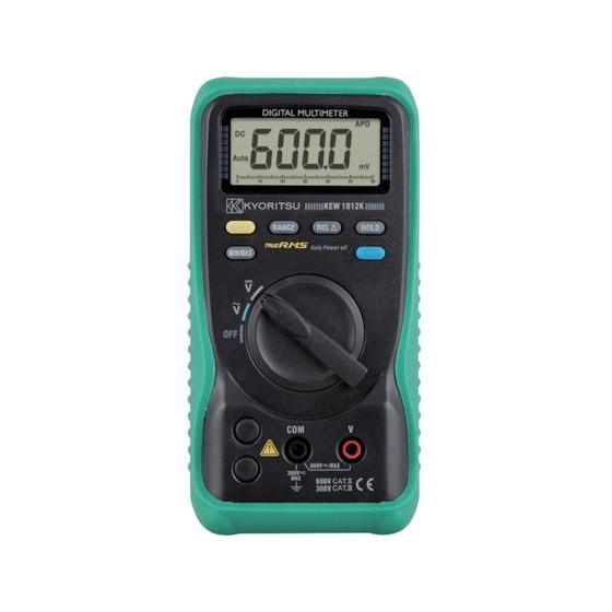 【仕様】●型番:KEW1012K ●直流電圧(V):600 ●交流電圧(V):600 ●幅×奥行×高さ:82×50×161mm ●分解能:直流電圧:0.1mV、交流電圧:1mV ●最大表示(カウント):6000 ●電源:単3乾電池(R6P)×2本(付属) ●検波方式:真の実効値整流(RMS) ●レンジ:オート ●オートパワーオフ、データホールド付