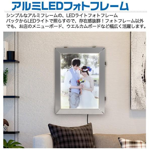 銀アルミフレームLEDライトフォトフレーム A4サイズ シルバー