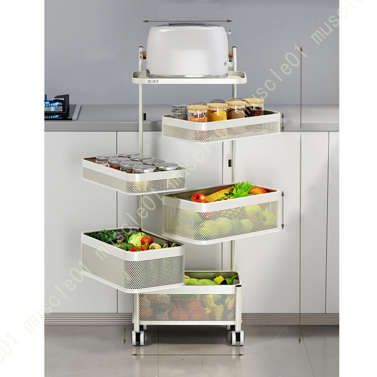 キッチンワゴン 天板付き 回転式 キッチンカート 野菜 整理棚 4段 家庭用 多機能 調味料ラック 収納ワゴン 移動式 小物収納 バスケットラック キッチン収納