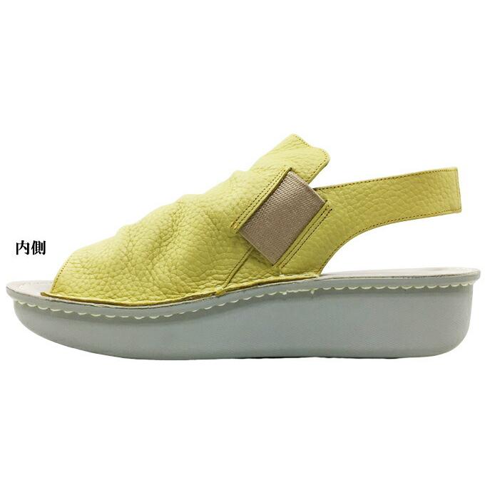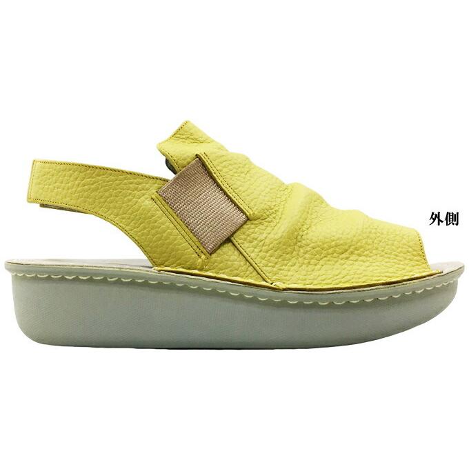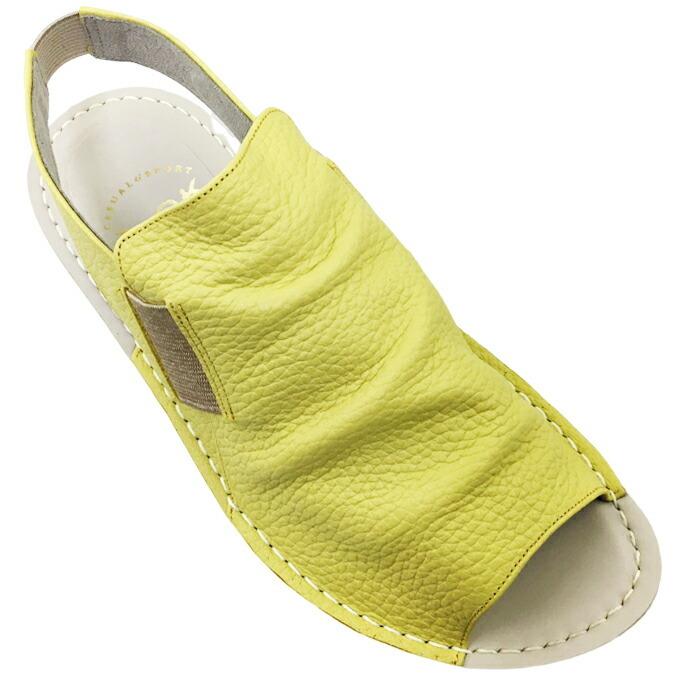 安心の日本製シボ革仕様でソフトな足当たり。両サイドとバックベルトの真ん中がゴム仕様で足入れがしやすく、足によくフィットします。インソールはソフトなポリウレタンを使用しクッション性が高く、船形構造が足をしっかり受けとめ、接地面にも滑りにくいポリウレタン素材を使用し防滑性もあり、履き心地の良いサンダルです。□カラー:イエロー・グレージュ・アイボリー□サイズ S(22.0〜22.5cm) M(23.0〜23.5cm) L(24.0〜24.5cm) LL(25.0cm) ワイズ(横幅):4E(EEEE) ヒールの高さ:約4cm 重量:約260g(Mサイズ片足で)□23.5cm(2E)の女性スタッフの感想 ソフトで履きやすいサンダルです。 私はMサイズが丁度よかったです。□素材 アッパー:本革 ソール:合成底サンダル レディース A-OK CASUAL&SPORTS 2254 エーオーケー オープントゥ バックベルトサンダル 前空き フラットソール 春 夏 疲れにくい 低反発 クッション性 屈曲性 軽量設計 サイドゴア 幅広 4E EEEE 本革 レザー ソフト革 シボ革 幅広 made in japan 女性 婦人"} 商品説明 商品の特徴 安心の日本製