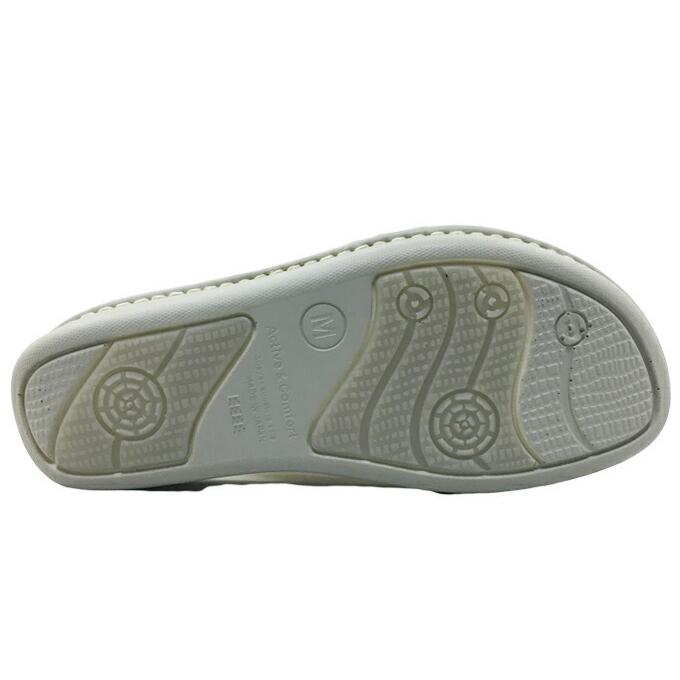 インソールはソフトなポリウレタンを使用しクッション性が高く、船形構造が足をしっかり受けとめ、接地面にも滑りにくいポリウレタン素材を使用し防滑性もあり、履き心地の良いサンダルです。