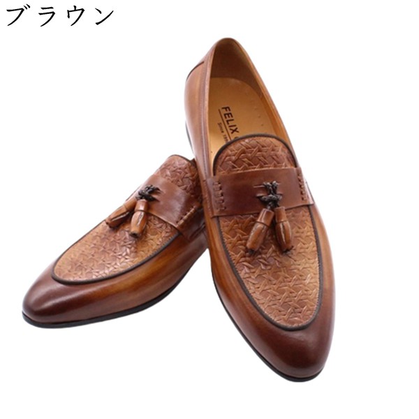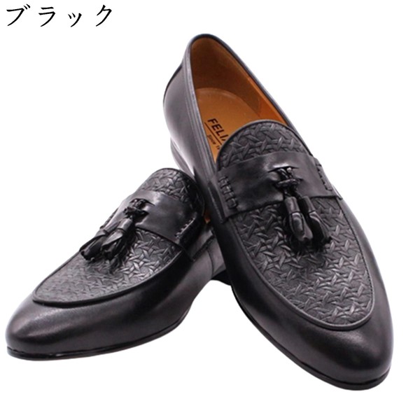 ドライビングシューズ レザー 編み込み モカシン ローファー メンズ タッセル 春 秋冬 スリップオン 大きいサイズ ビジネスシューズ