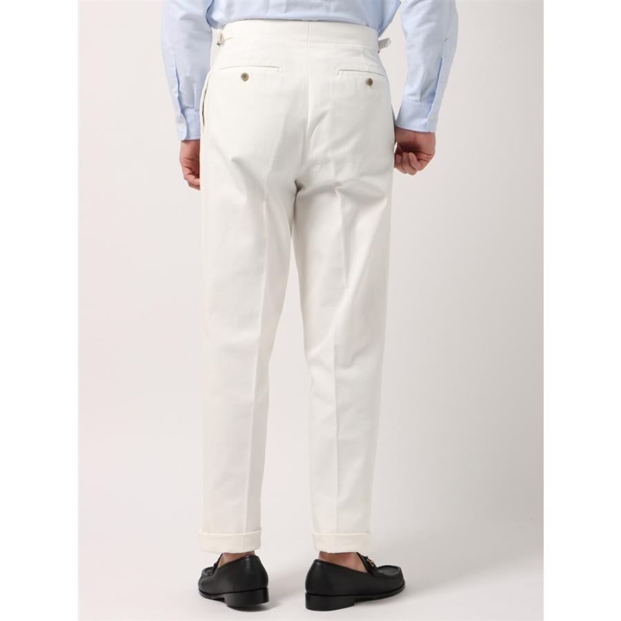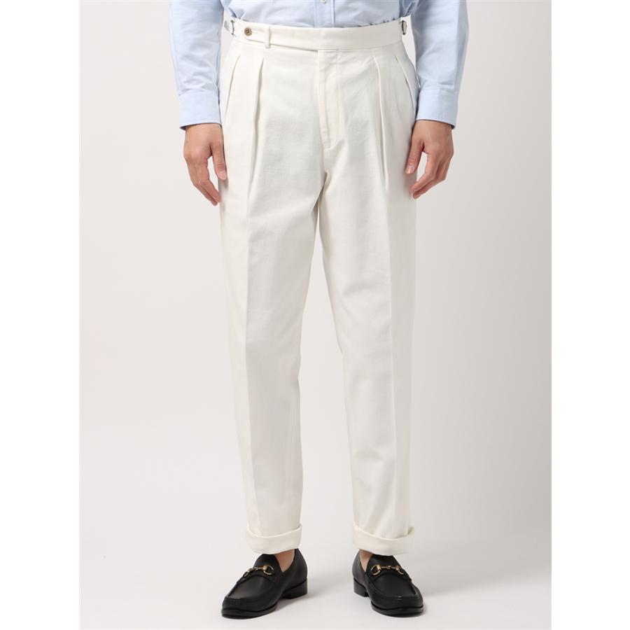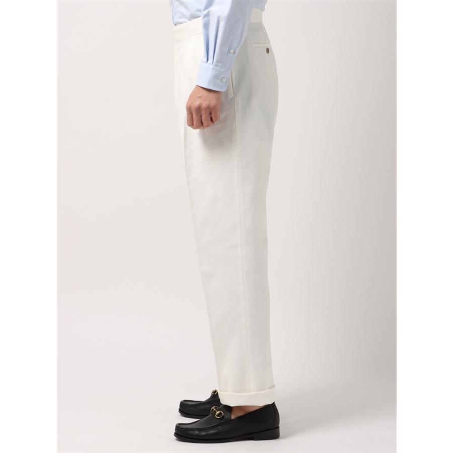 SALE価格【スーツスクエア】タックセミワイドストレートパンツ ウォッシャブル コットン 無地 ホワイト