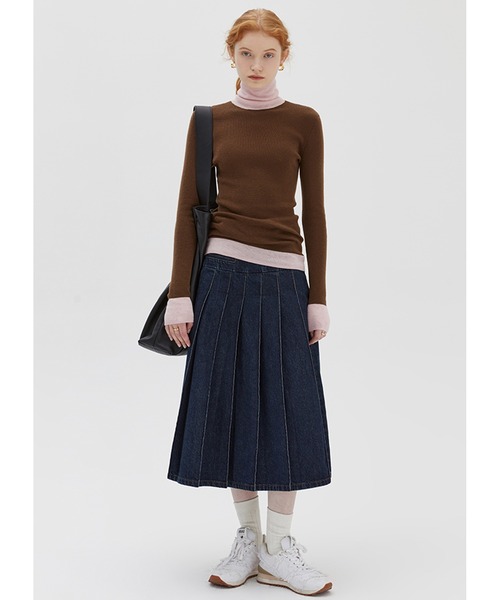 参考商品名:ハイウエスト デニムロングプリーツスカート FC23B019【Fano Studios】