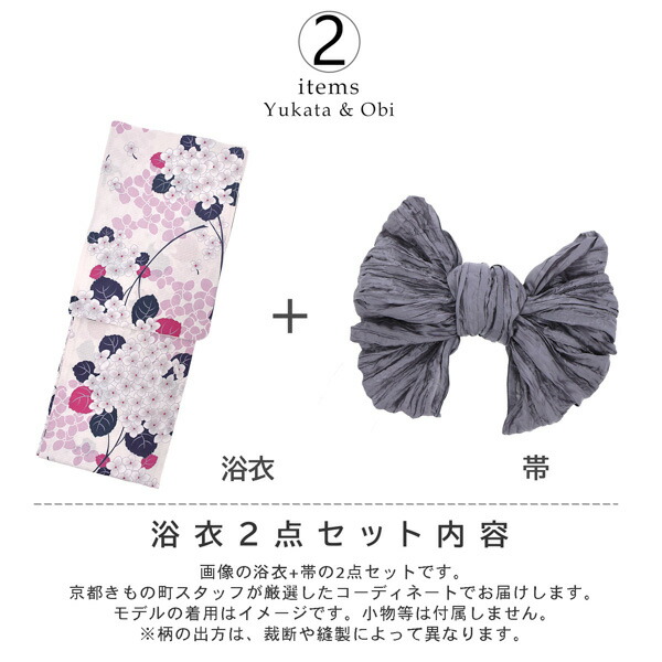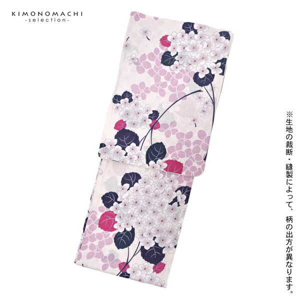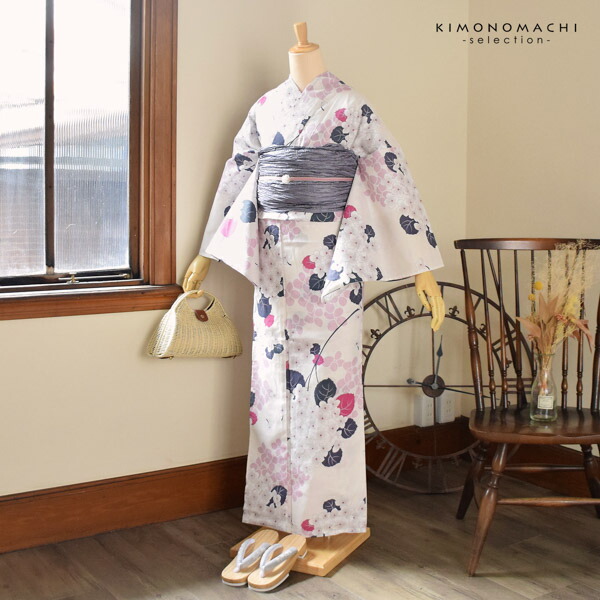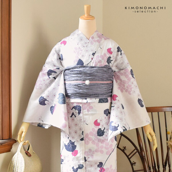 ブランド浴衣セット 浴衣と兵児帯の2点セット 「浴衣 あじさい 白+兵児帯 スレートグレー」 生田絵梨花 レディース Fサイズ 女性浴衣 綿浴衣 (メール便)