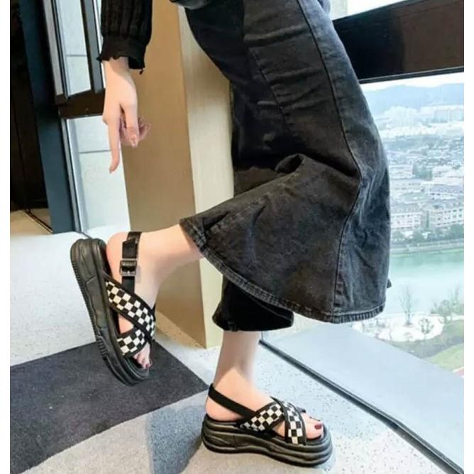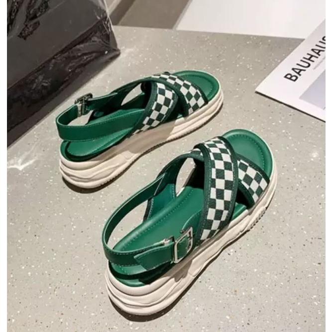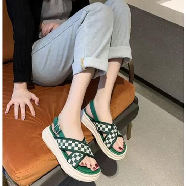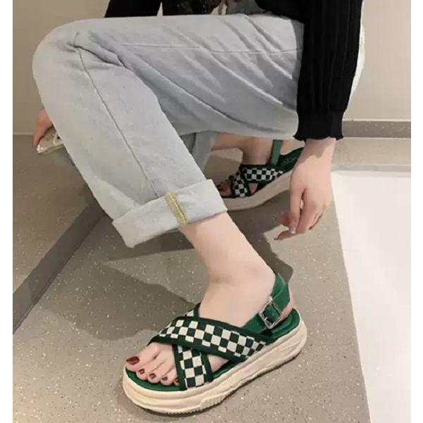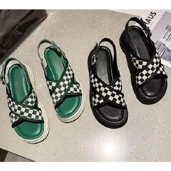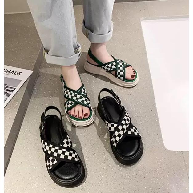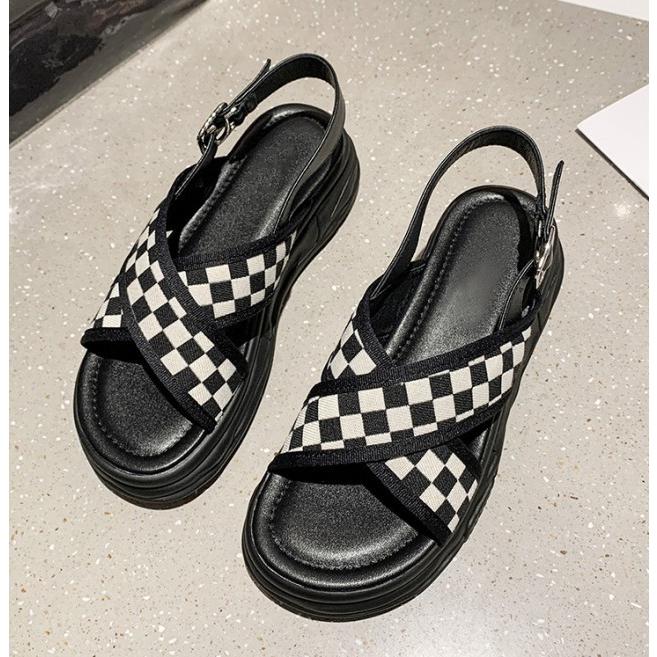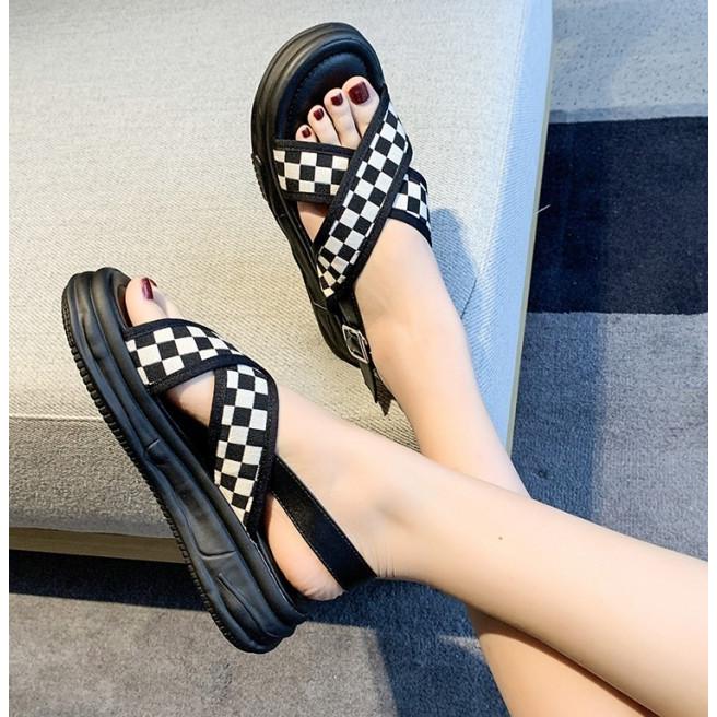 スポーツサンダル レディース 厚底 サンダル ブロックチェック ストラップサンダル カジュアル 夏 黒 チェック柄 チェッカー柄 韓国 ファッション