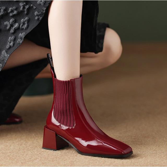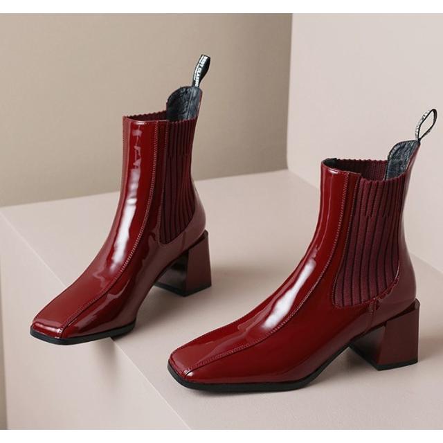 サイドゴアブーツ レディース ソックス ブーツ エナメルブーツ ショートブーツ チャンキーヒール ブロックヒール 黒 秋冬 ローヒール ブーツ ショート